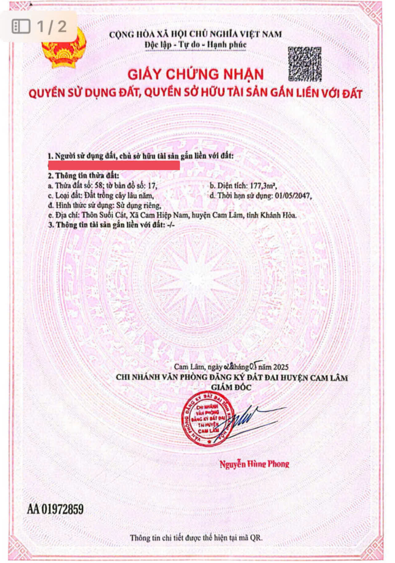 GNH01 – 2 LÔ ĐẤT FULL THỔ CƯ – CỰC HIẾM – ĐƯỜNG QH 8M – NINH QUANG, NINH HÒA