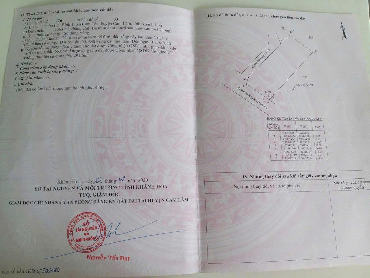 GNH01 – 2 LÔ ĐẤT FULL THỔ CƯ – CỰC HIẾM – ĐƯỜNG QH 8M – NINH QUANG, NINH HÒA